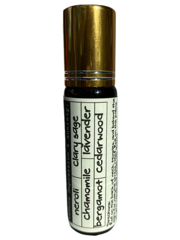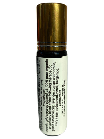 Ingredients: Organic Cold-Pressed Almond Oil, 100% Pure Therapeutic-Grade Blend of the Following Essential Oils: Lavender, Roman Chamomile, Clary Sage, Cedarwood, Neroli, Bergamot, and Peppermint