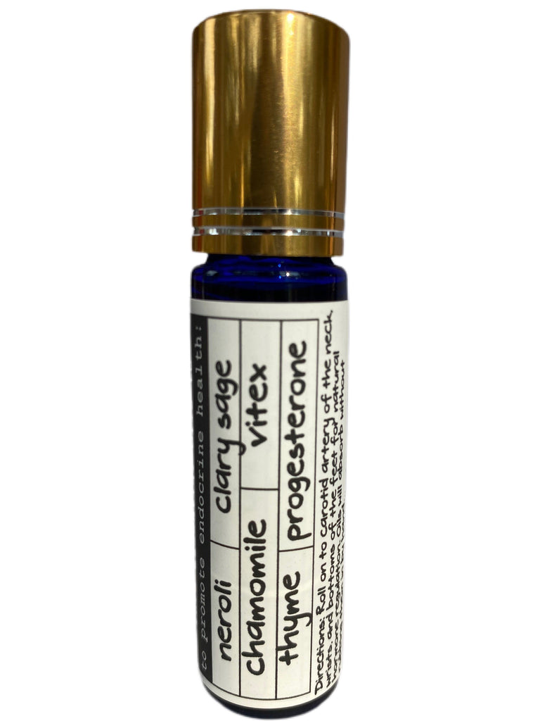 Directions: Roll onto the carotid artery of the neck, wrists, and bottoms of the feet for natural hormone regulation. Oils will absorb without rubbing them in by hand.